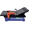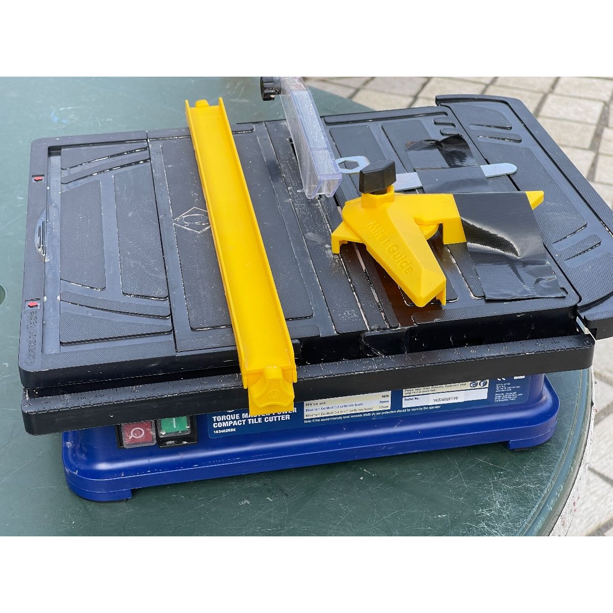 Cuts tiles up to 25mm thick. Splash guard with variable height adjustment. 110mm Diamond blade with continuous rim for extra clean cut. Fully adjustable mitre guide with unique ratchet mechanism. Integral measuring guide and quick release rip guide for perfect straight cuts. Flip-up cutting table for 22.5 and 45 degree mitres. 'No mess' water recirculation system. Quick release splash guard for plunge cuts. Hi-torque geared motor for maximum cutting performance. Mitre saw. 450 watts. 230V battery power. Single speed. Blade diameter 110mm. Sawing capacity: . Cable length of 1.5m. Bevel capacity max: 45° bevel cut. Ideal for: all tile types. Parallel guide. Suitable for the left handed. Size H11, W36, D38cm