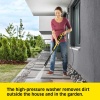 - The high-pressure hose is stored at the back of the unit, making it easy to set up and store away